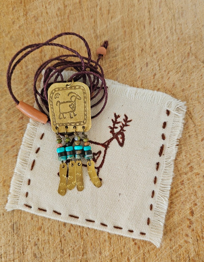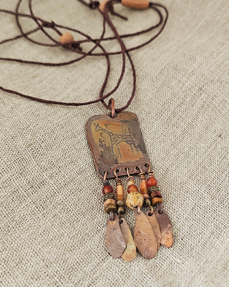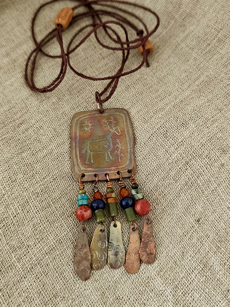 Etched in Time is a jewelry collection that draws from this deep well of inspiration, transforming timeless rock art into modern wearable pieces. Each pendant, etched by hand in warm copper or golden brass and paired with natural stone beads, is a tribute to the enduring artistry of the past — a dialogue between earth, memory, and adornment.
