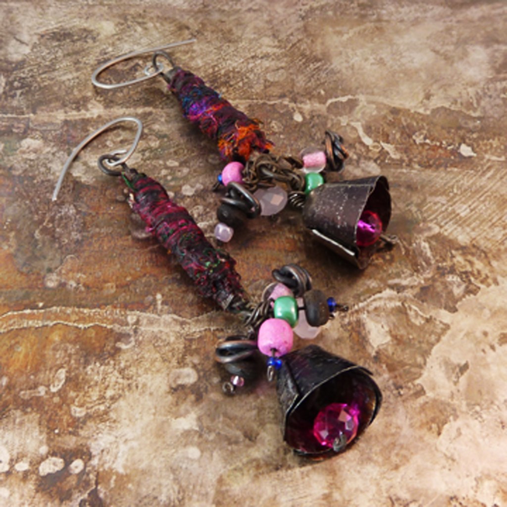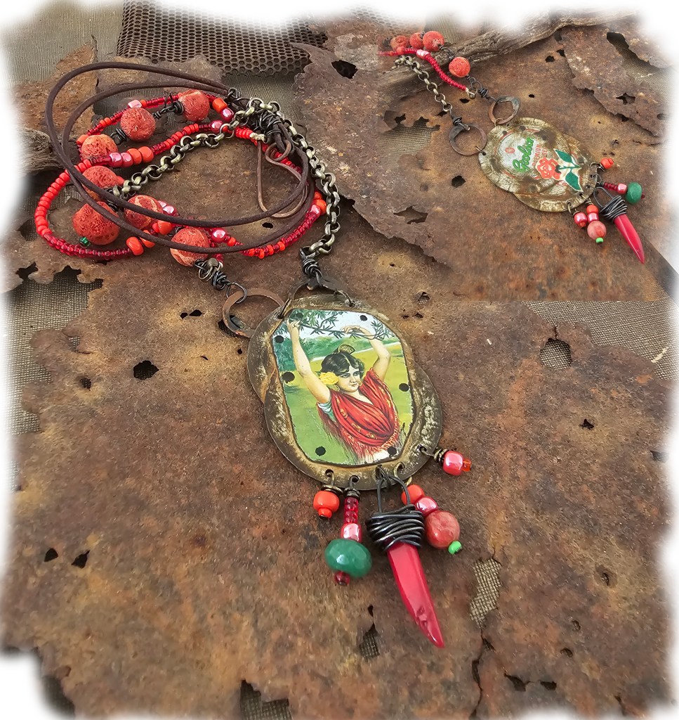 The sharp edges of the metal is hammered and sanded and coated in a protective layer to prevent further rusting. I often take old pieces of jewellery apart to reuse the beads or stones. And also have a growing stash of pieces of rusted wire gathered while walking the dog.