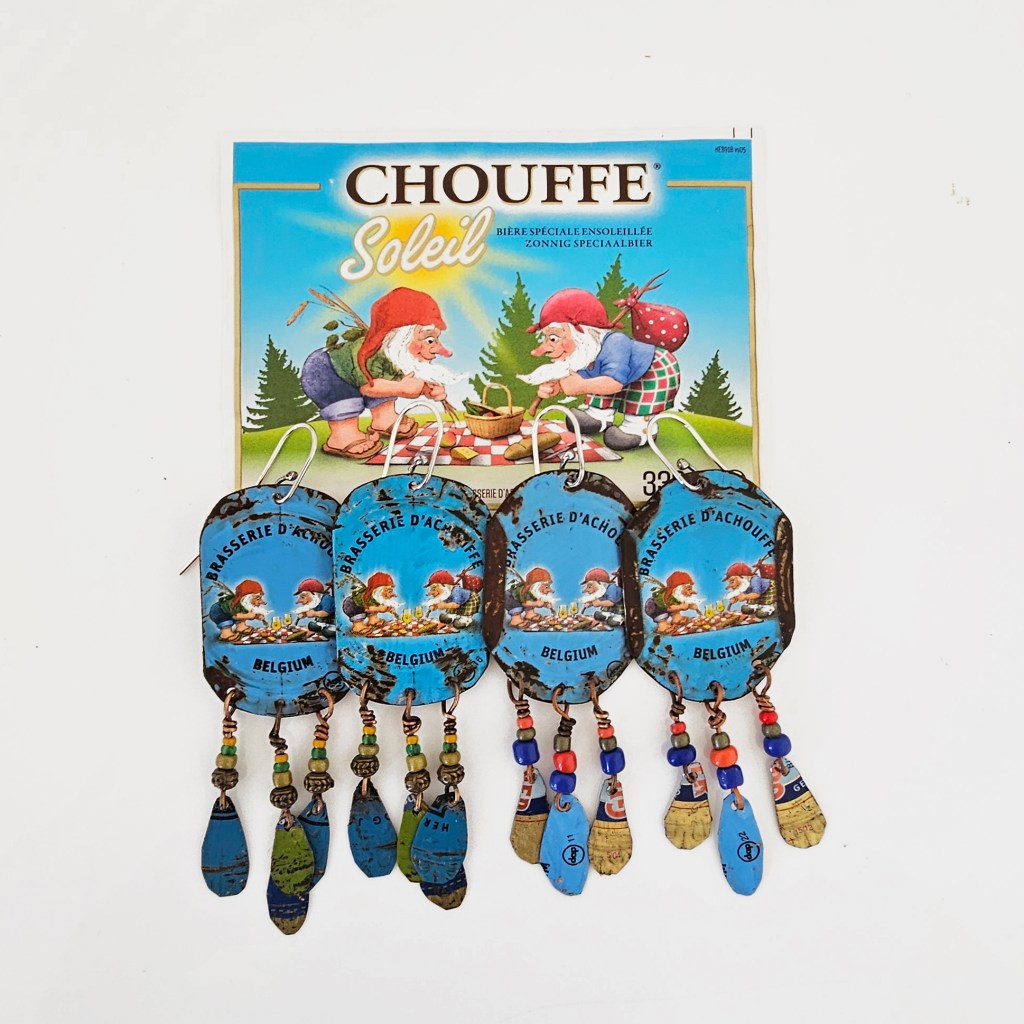 It all started with those super cute little La Chouffe gnomes. When I first saw those beercaps I just new that I had to make something out of it. This lead me to constantly be aware of the lovely colours and pictures found on many empty tins. Then there is also that feel good vibe of knowing that one is recycling something which otherwise would have gone to waste.